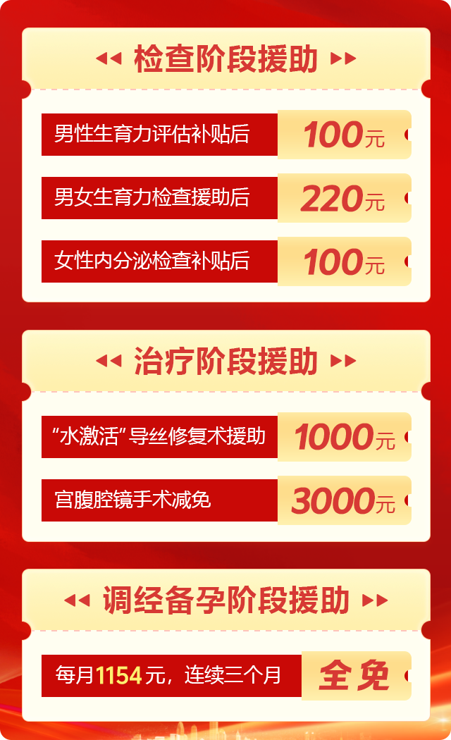 为了减轻不孕不育家庭的经济负担,郑州慈善总会送子公益基金为来院患者提供“优生及不孕普查保障型援助”和“疑难性不孕深度帮扶服务”。患者只需报名登记,即可通过免申报、直接补贴的方式,享受全方位的专属援助服务。点击在线咨询,免费申请补助